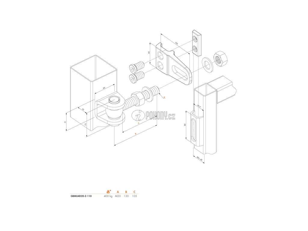 LOCINOX® GBMU4D20 - navařovací pant M20 s možností otevírání až 180°. Flexibilní, nastavitelný 3D regulace, zvýšená bezpečnost, částečně pozinkovaný