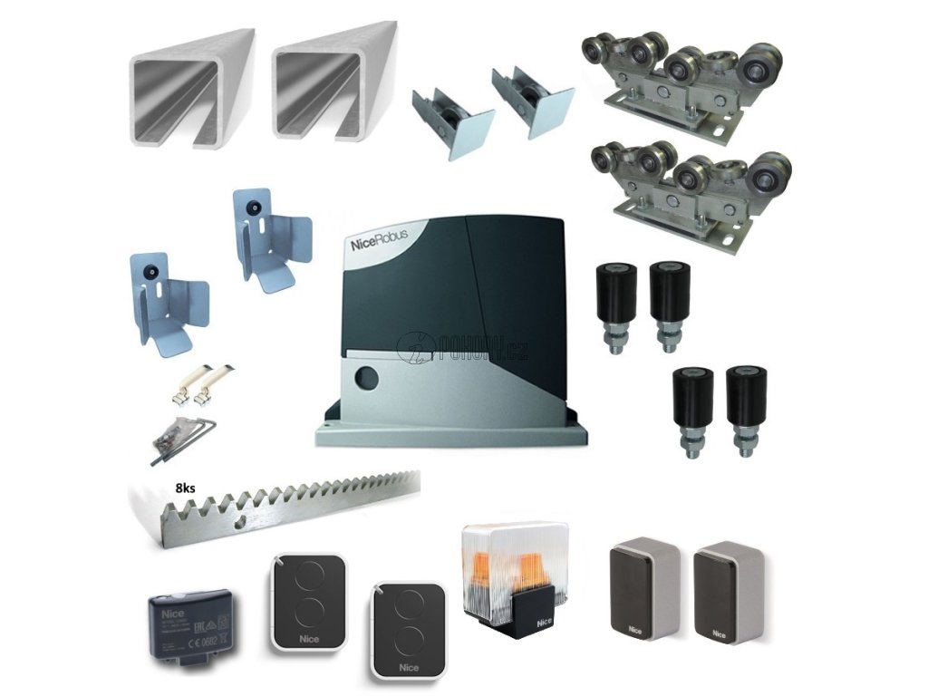 Kompletní sada se zinkovaným c-profilem pro výrobu samonosné posuvné brány s průjezdem max. 7m a hmotností max. 500kg, vybavená pohonem NICE ROBUS-1000 od předního výrobce kvalitní bránové automatizační techniky.
