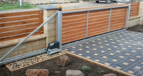 Nebývá to obvyklé, ale občas je nutné řešit posuvnou bránu v kopci. Pokud se bavíme o bráně do hmtnosti 200kg a o drobném převýšení, např 10cm na 4m, můžeme si pomoci určitým předimenzováním pohonu. Určitě bude lepší pohon do 500kg než do 400kg. Je nutno si uvědomit, že převodovka pohonu je při jízdě z kopce ve větším záběru, protože brána má snahu díky své hmotnosti zvyšovat rychlost a předběhnout tak rychlost točícího se pastorku.