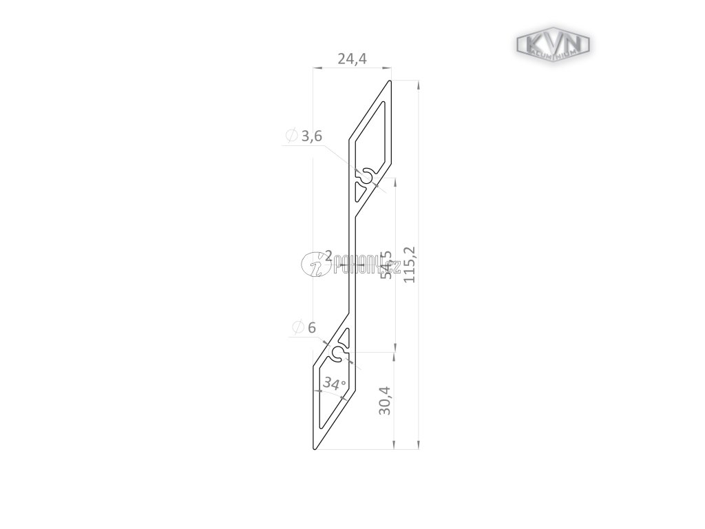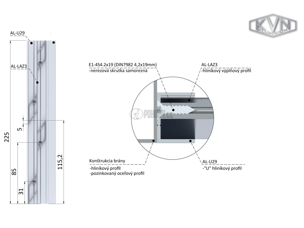 Hliníkový profil o síle 2 mm na plotovou výplň 115,2x24,4x6000
