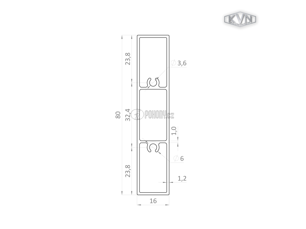 Hliníkový profil s povrchovou úpravou RAL7016, práškový lak se strukturou, 80x16x6000mm