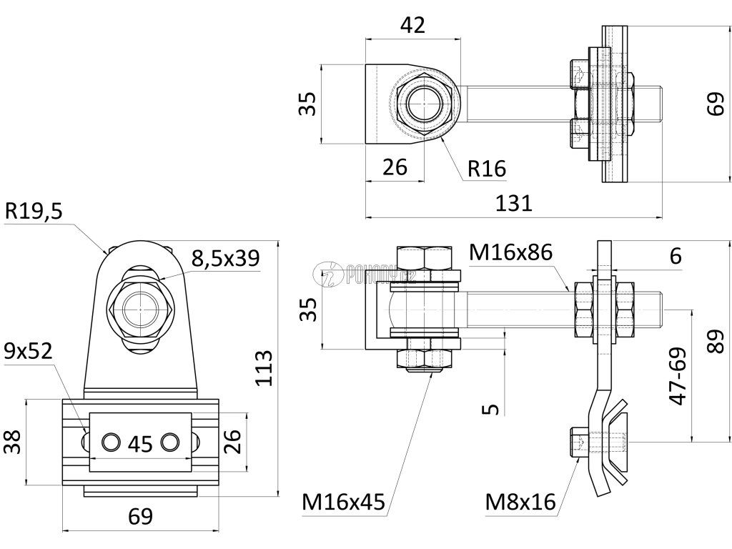 3D Pant M16 k navaření, otevíratelný 180°, regulace 3D, pozinkovaný