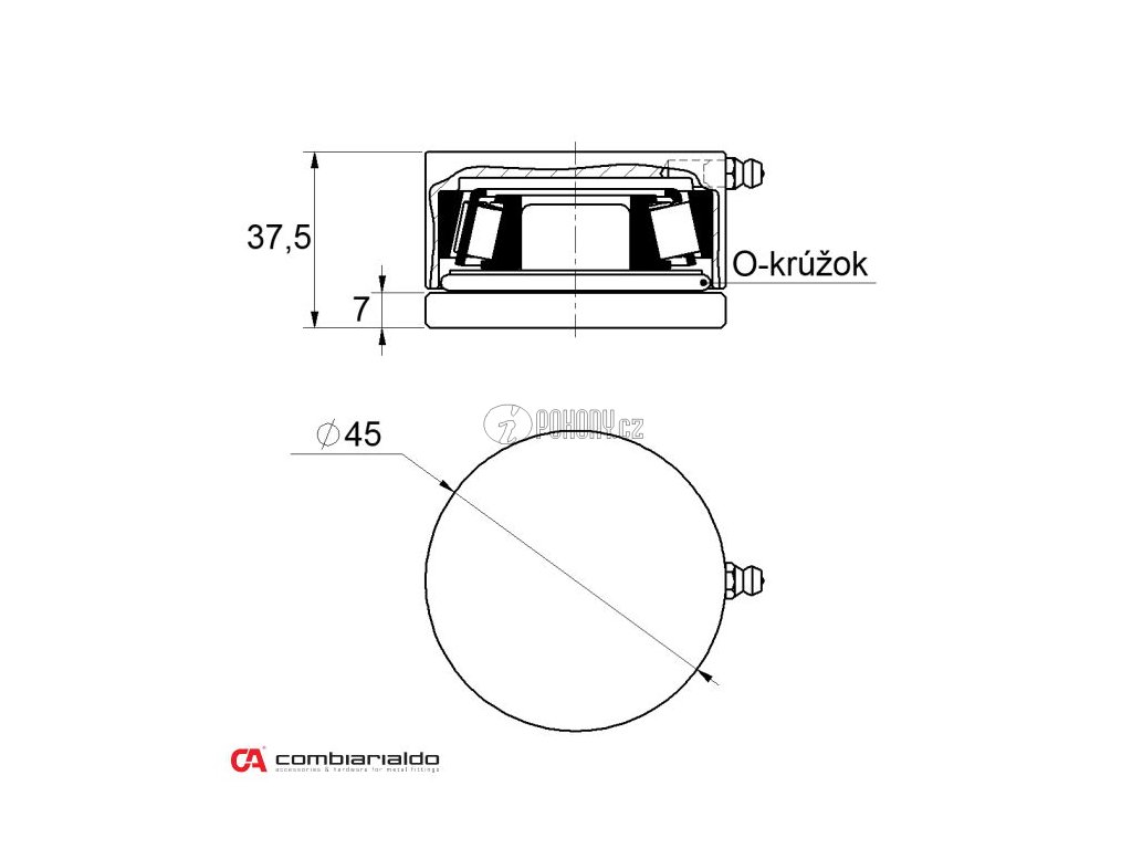 Spodní ložiskový pant o průměru 45 mm. Používá se v kombinaci s horním ložiskovým pantem KV-C345P
