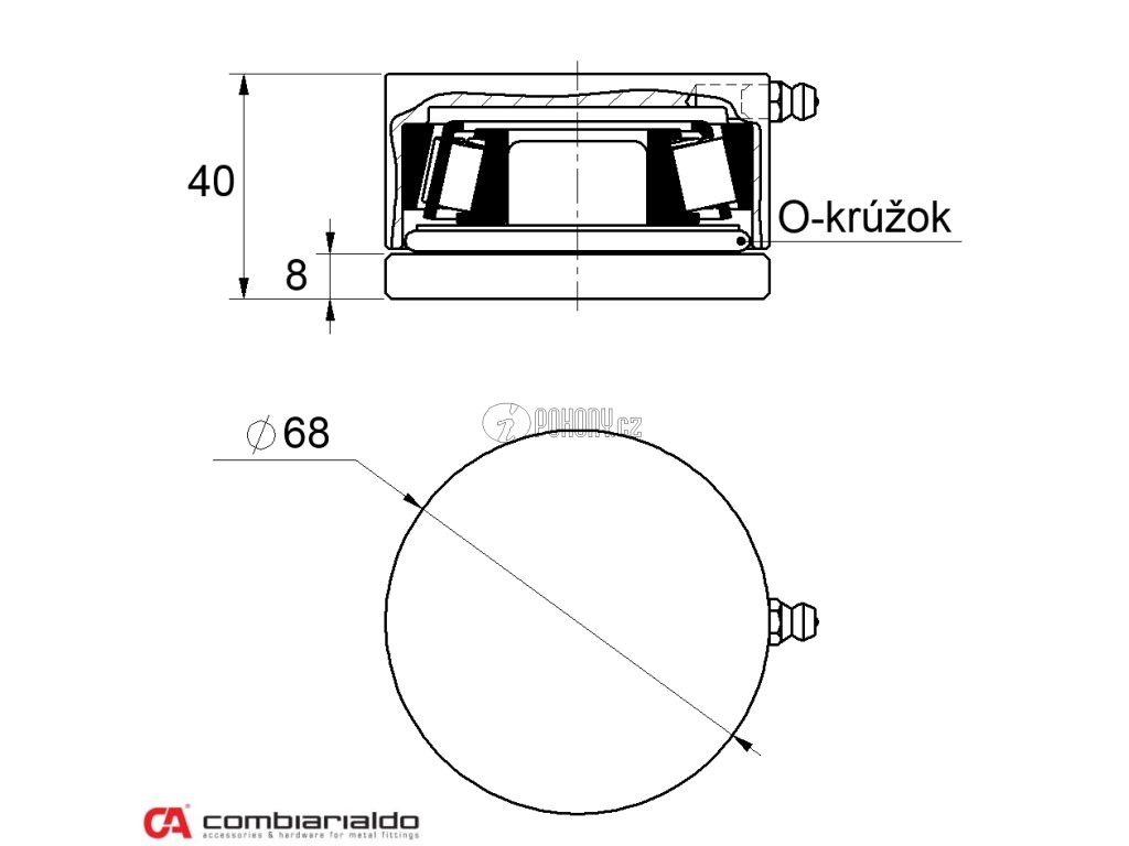 Spodní ložiskový pant o průměru 68 mm. Používá se v kombinaci s horním ložiskovým pantem KV-C345G