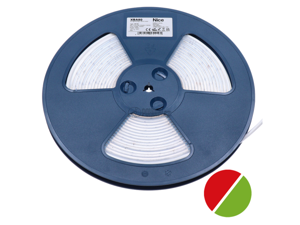 NICE XBA80 - Diodové výstražné světlo, funkce semafor červená / zelená, do ramena XBA, délka 8 mSestava vysoce svítívých LED v barvě červená/zelená pro zacvaknutí do horní či dolní části ramene XBA5, XBA14 a XBA15.