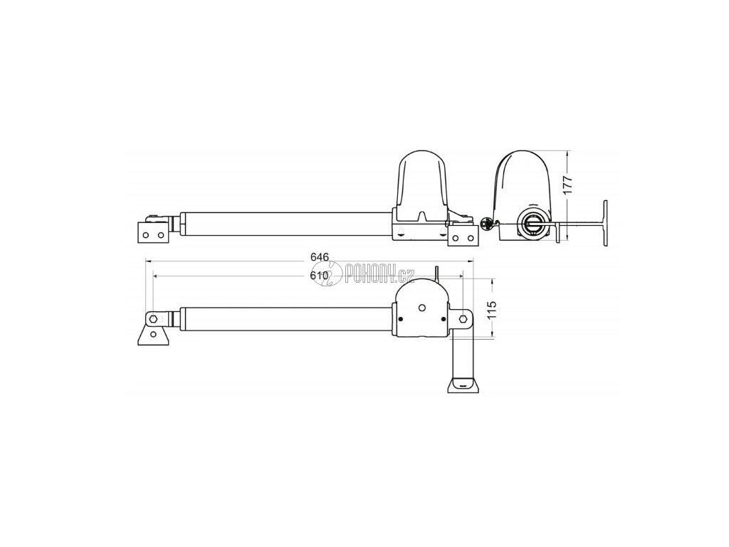 Tento špičkový pohon je vhodný pro automatizaci 2-křídlových privátních bran o šířce jednoho křídla do 2 m, maximální váhy jednoho křídla 200 kg a maximální šířky průjezdu do 4 m.