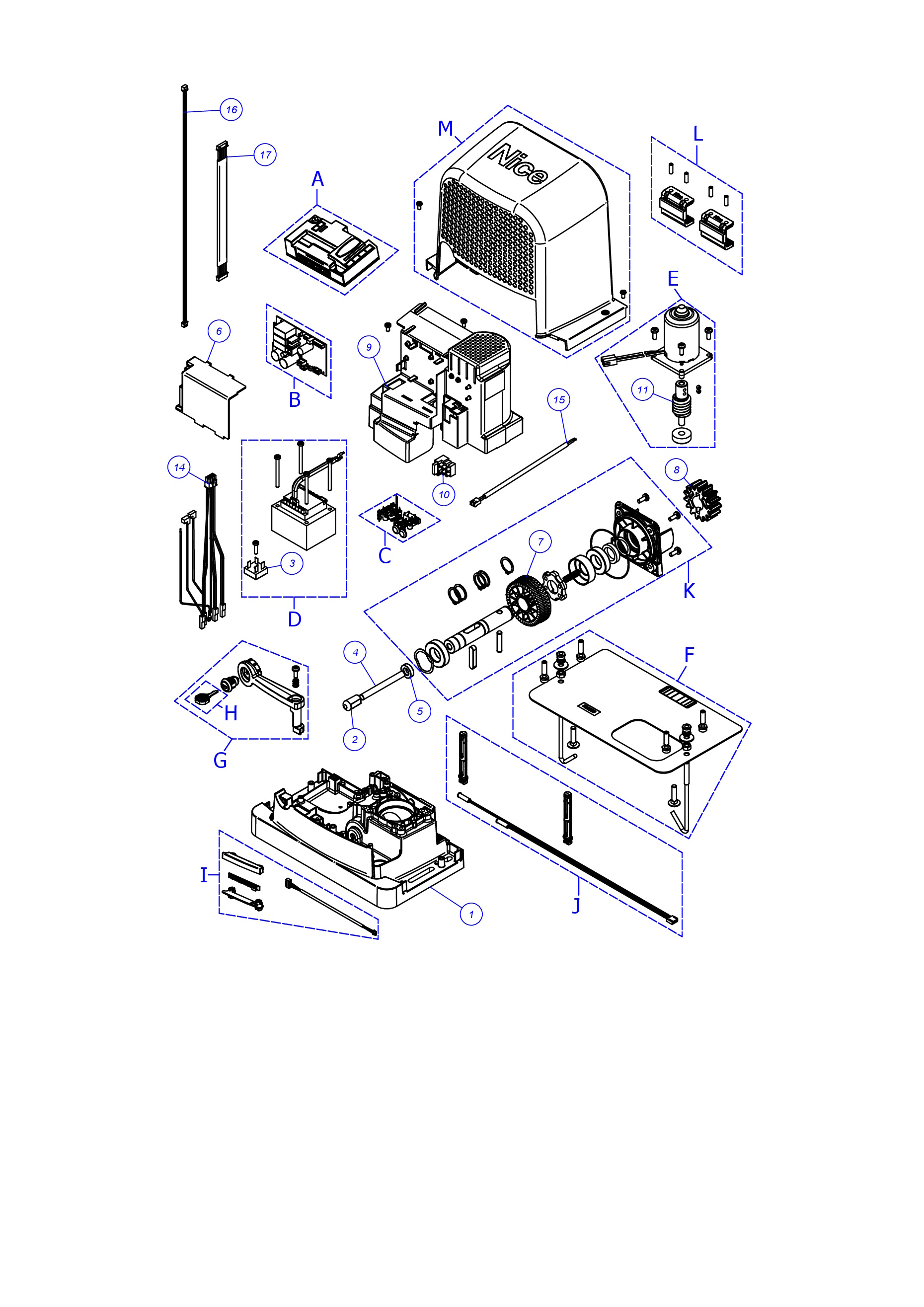 Pokud Vámi hledaný díl nenaleznete, napište nám číslo pozice z rozkresu níže na servis@i-pohony.cz. My se náhradní díl pokusíme u výrobce dohledat ručně a případně Vám ho rádi nabídneme.