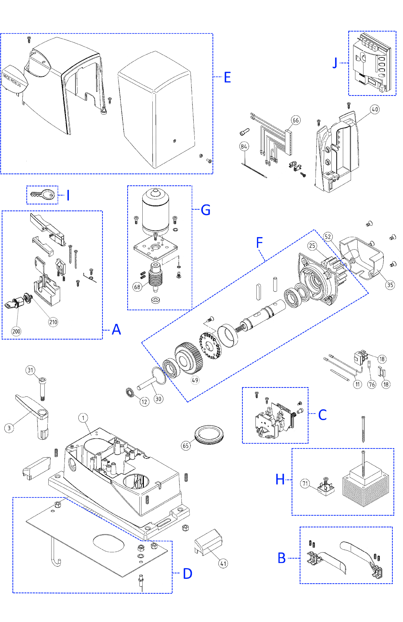 Pokud Vámi hledaný díl nenaleznete, napište nám číslo pozice z rozkresu níže na servis@i-pohony.cz. My se náhradní díl pokusíme u výrobce dohledat ručně a případně Vám ho rádi nabídneme.