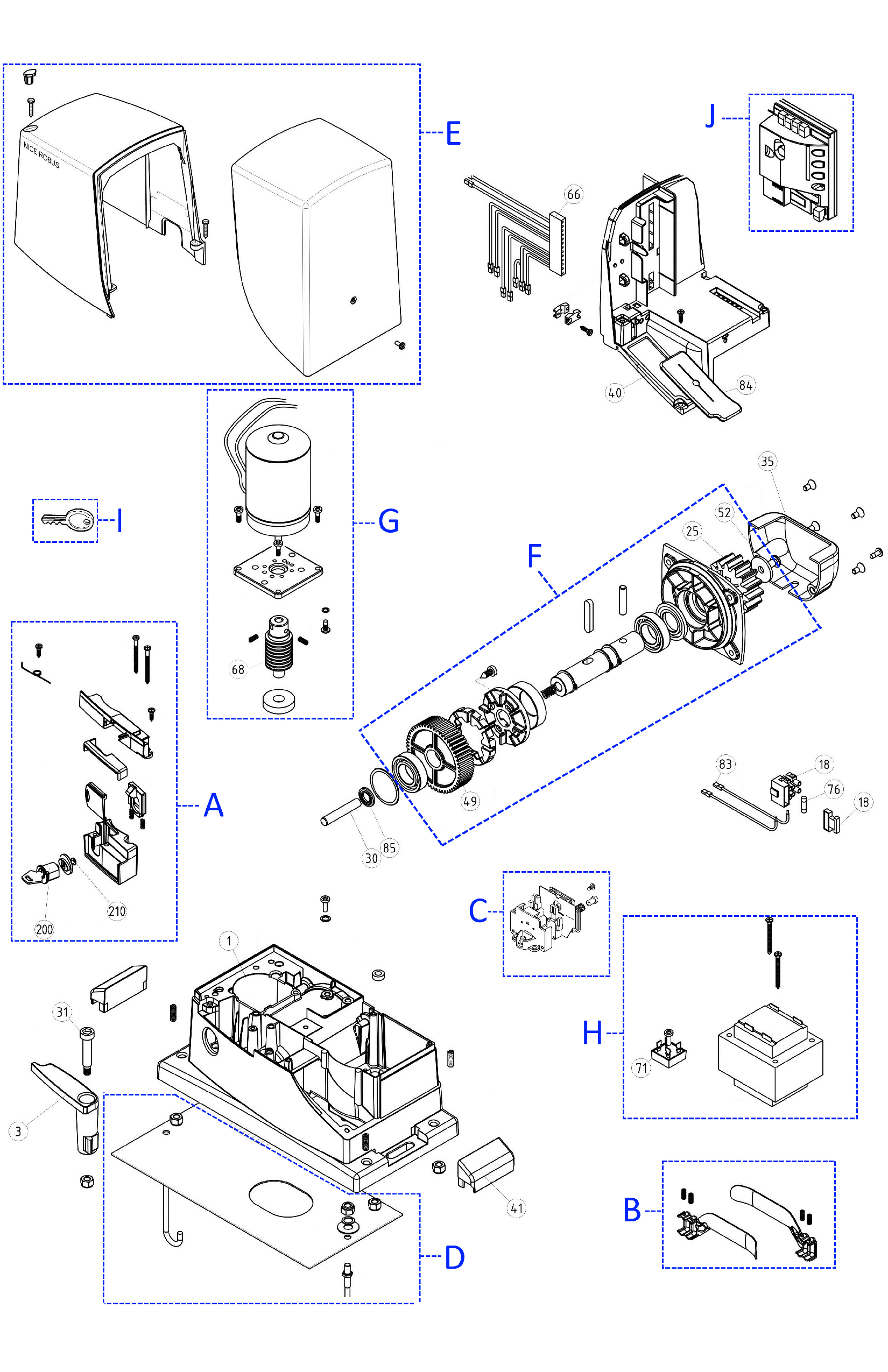 Pokud Vámi hledaný díl nenaleznete, napište nám číslo pozice z rozkresu níže na servis@i-pohony.cz. My se náhradní díl pokusíme u výrobce dohledat ručně a případně Vám ho rádi nabídneme.