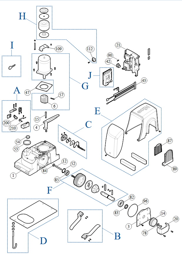 Pokud Vámi hledaný díl nenaleznete, napište nám číslo pozice z rozkresu níže na servis@i-pohony.cz. My se náhradní díl pokusíme u výrobce dohledat ručně a případně Vám ho rádi nabídneme.