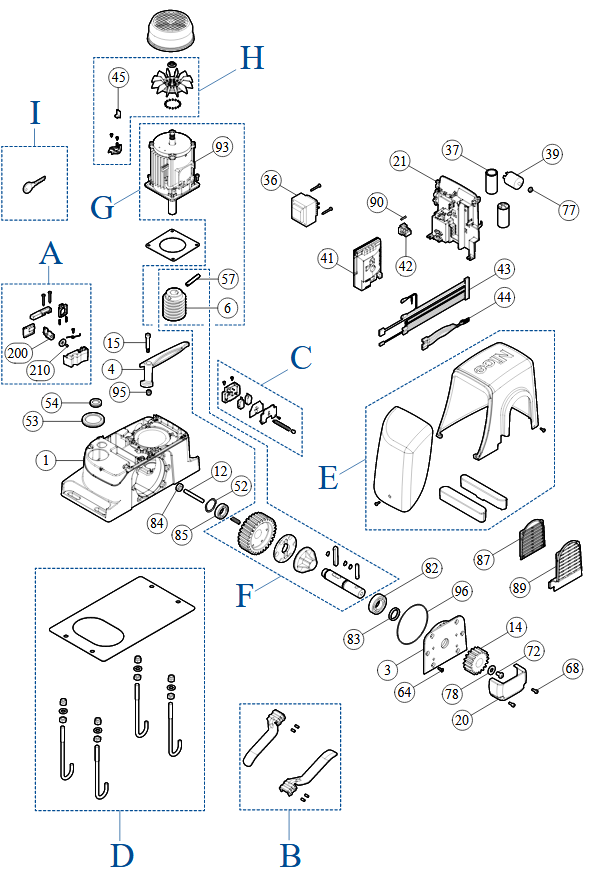 Pokud Vámi hledaný díl nenaleznete, napište nám číslo pozice z rozkresu níže na servis@i-pohony.cz. My se náhradní díl pokusíme u výrobce dohledat ručně a případně Vám ho rádi nabídneme.