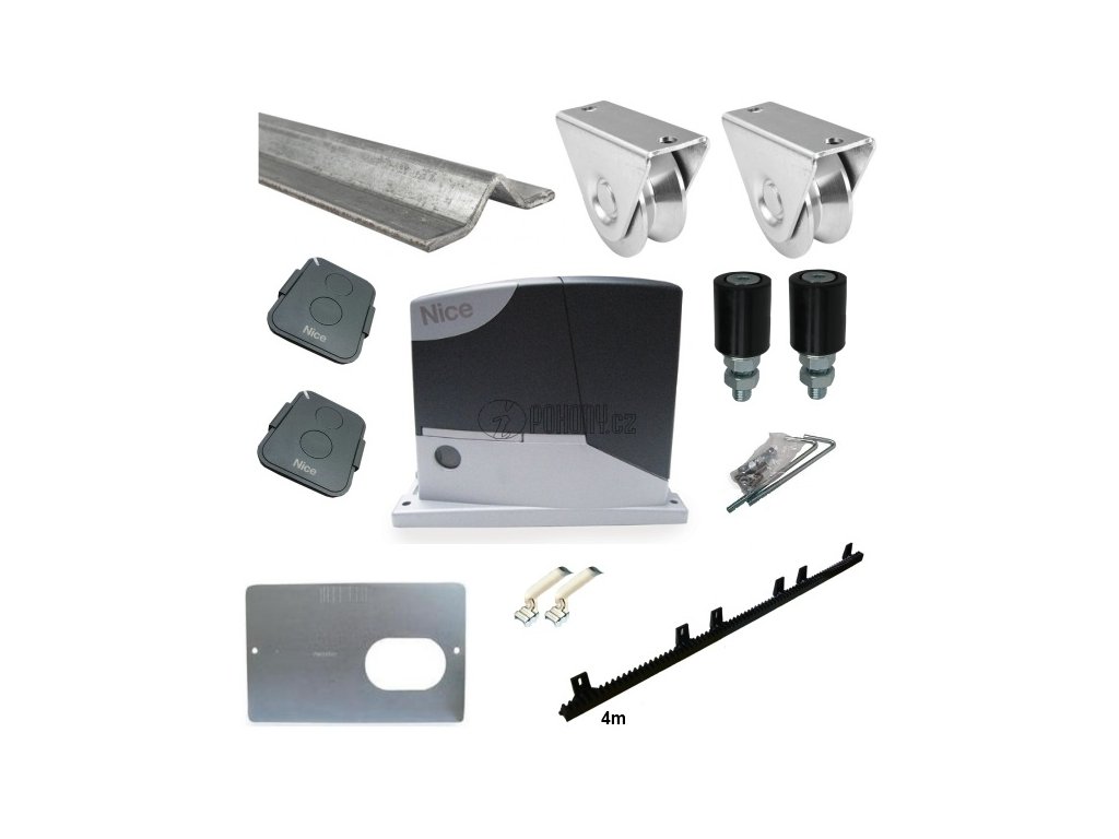 Kompletní sada pro výrobu pojezdové posuvné brány s průjezdem do 3,5m a hmotností max. 400kg, vybavená pohonem NICE ROAD-400 od předního výrobce kvalitní bránové automatizační techniky.