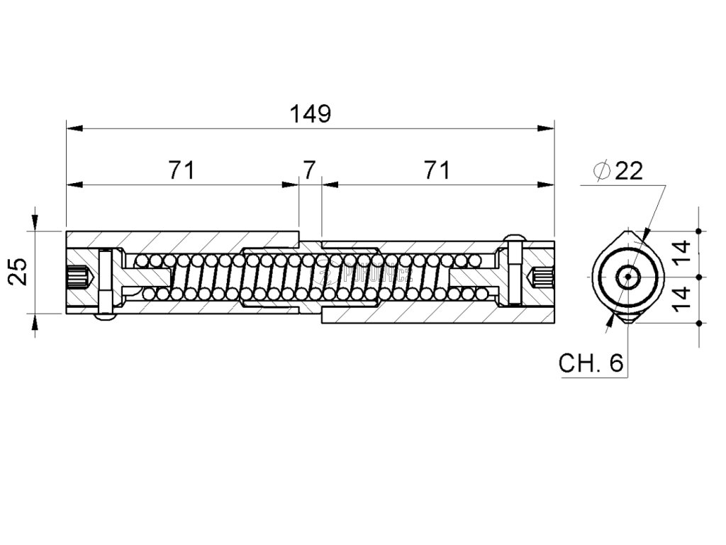 Samozavírací pant pravý, délka 150 mm, k navaření, nastavitelný