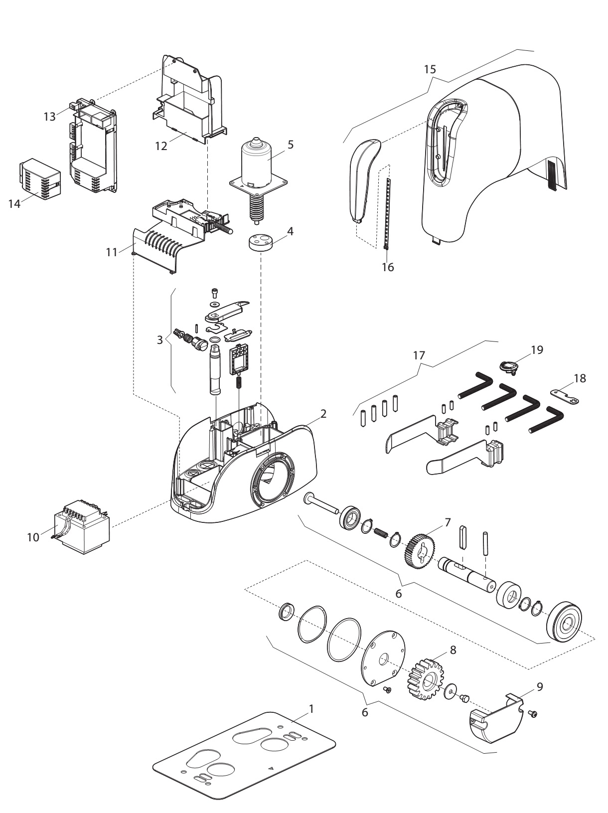Pokud Vámi hledaný díl nenaleznete, napište nám číslo pozice z rozkresu níže na servis@i-pohony.cz. My se náhradní díl pokusíme u výrobce dohledat ručně a případně Vám ho rádi nabídneme.