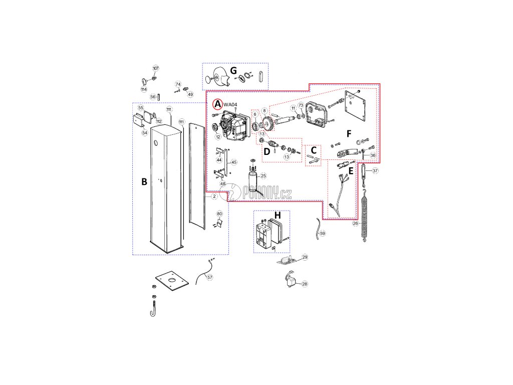 Kompletní převodovka s motorem 24V pro závory WIL4 - WA04