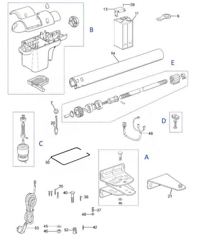 Pokud Vámi hledaný díl nenaleznete, napište nám číslo pozice z rozkresu níže na servis@i-pohony.cz. My se náhradní díl pokusíme u výrobce dohledat ručně a případně Vám ho rádi nabídneme.