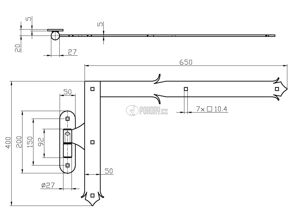 Horní pásové kování 400 x 650 mm s čepem, profil 50 x 5 mm, černá barva