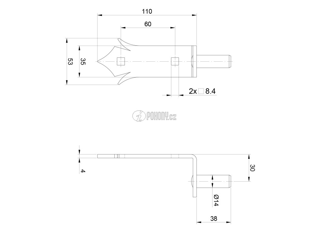 Kování ozdobné, 150 x 35 mm, s čepem ø14 mm, černá barva