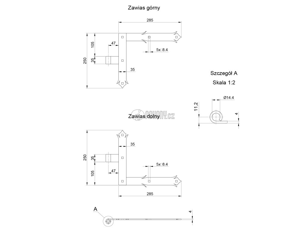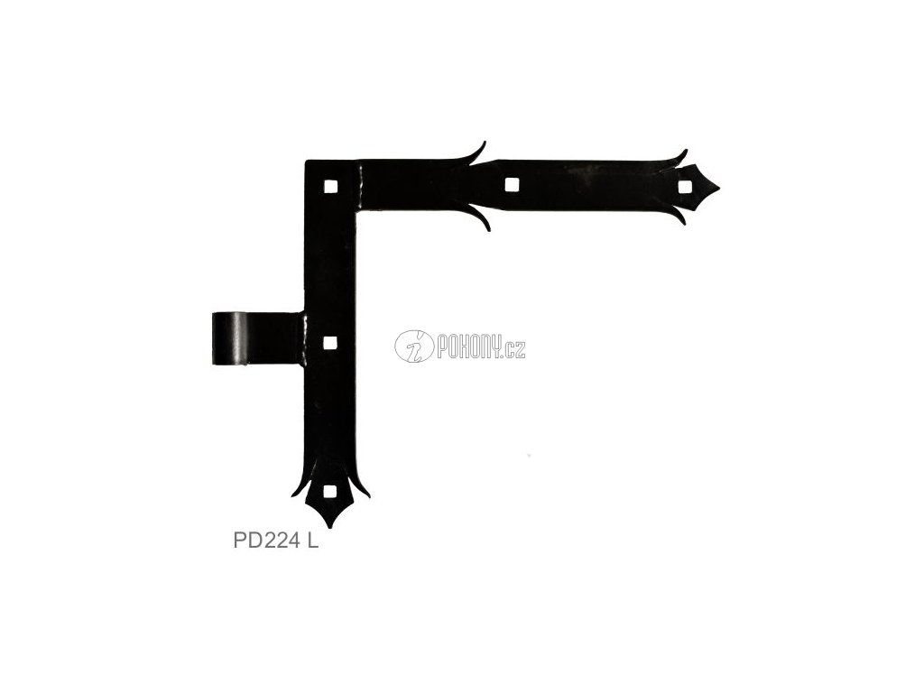 Kování ozdobné, 250x290mm, 35x4mm, ø čepu 14mm, levé, černé