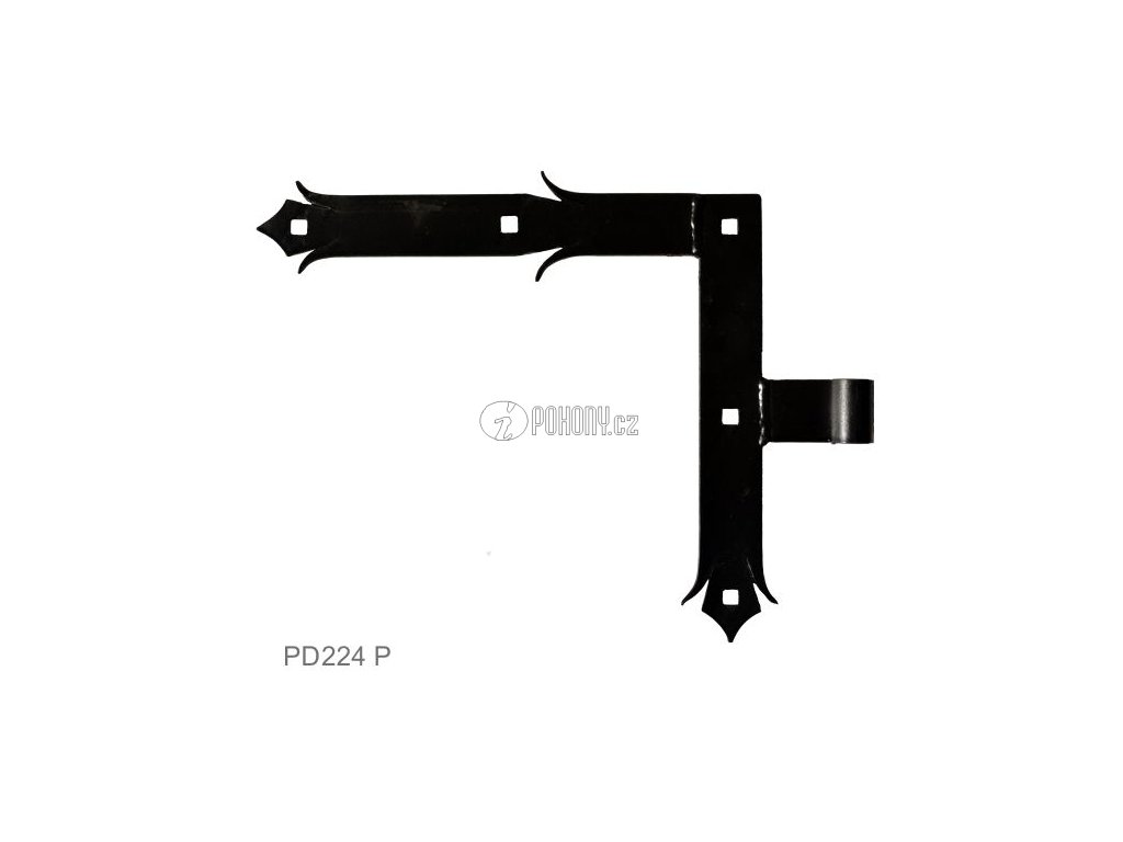 Kování ozdobné, 250x290mm, 35x4mm, ø čepu 14mm, pravé, černé