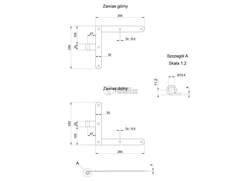 Ozdobné kování, pravé, 250x290 mm, 35x4 mm, Ø14 mm, barva černá