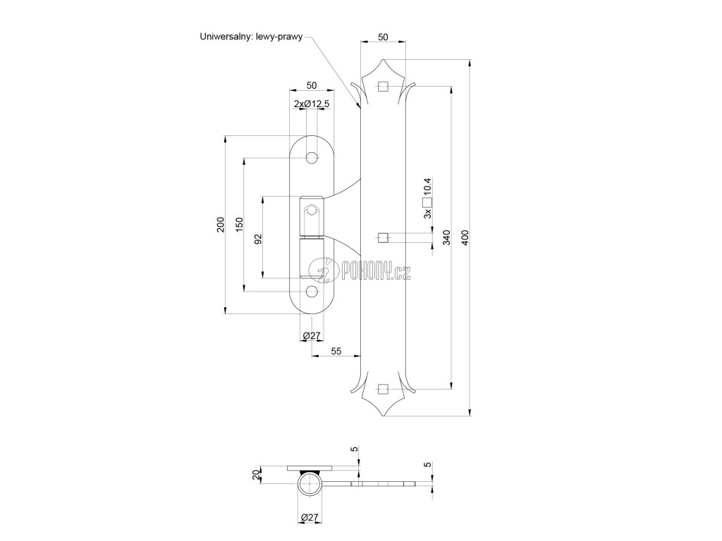 Pant s kováním zdobený, 400 x 50 x 5 mm, ø27 mm, černá barva